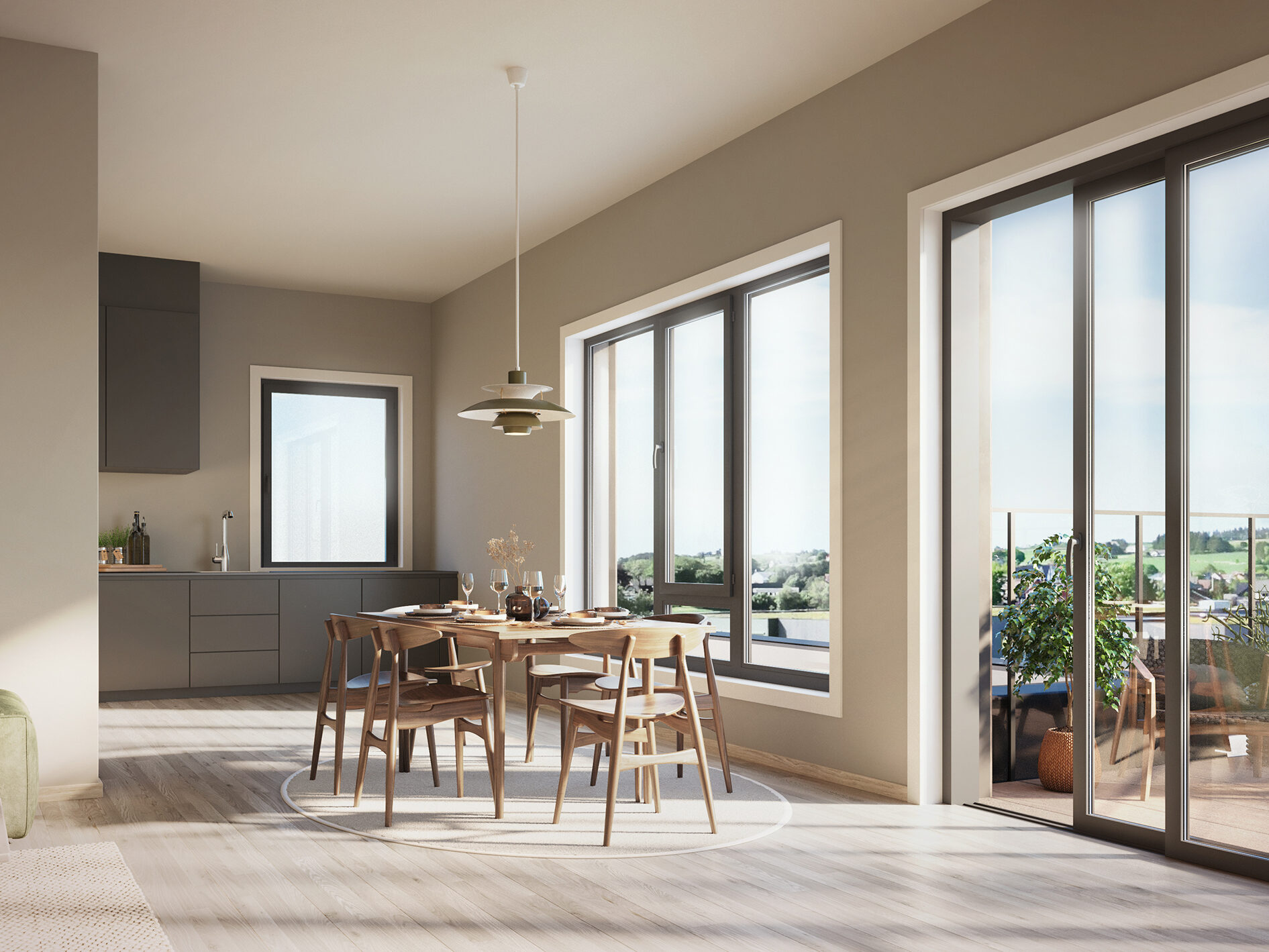 Flere av leilighetene er planlagt med balkong hvor en del er innglasset. Dermed kan du få et herlig helårs uterom. Hva med et par lenestoler her «ute», gjerne med harmoniske dufter fra en urtekasse, fargesterke blomster og litt rolig musikk på sonosen? Kan fort bli en fin middagslur før treningsturen.